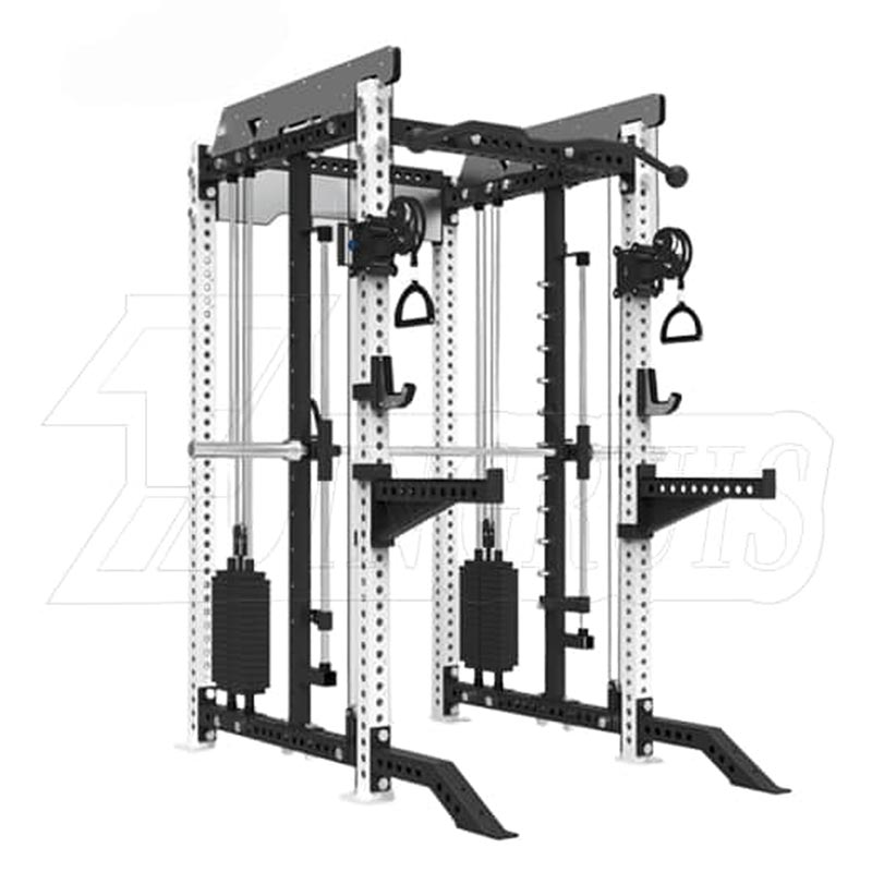 Kable Crossover+Smith-ekin bateratutako Power Rack hau fitness ekipamenduen integrazioaren behin betikoa da, funtsezko hiru oinarrizkoak bateratuz.
