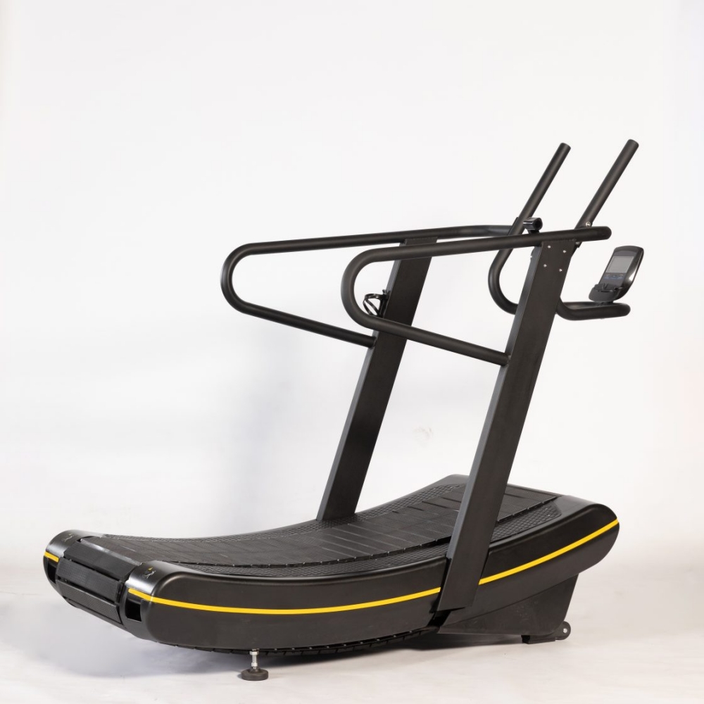 (4) Zinta kurbatua- 8 km-ko Korrika eta Errepide Erresistentzia Korrika HYROX-en % 50 baino gehiago osatzen du eta erresistentziaren oinarria da. Motordun zinta tradizionalekin alderatuta, zinta kurbatuak hobeto egokitzen dira HYROX-en entrenamenduarekin: auto-elikadura, errepideko benetako erresistentzia simulatuz eta korrikaren ekonomia eta hanken erresistentzia hobetuz mugimendu pasiborik gabe.